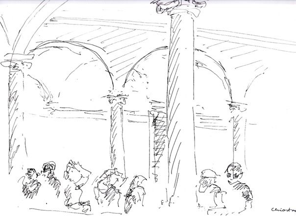 Zu gewinnen gibt es dieses Mal eine Zeichnung, die ich in eben dieser Stadt im Kreuzgang eines ehemaligen Klosters gemacht habe – dieses Kloster war das ‚Hauskloster‘ der im Rätsel gesuchten Familie und wurde sehr von ihr unterstützt.
